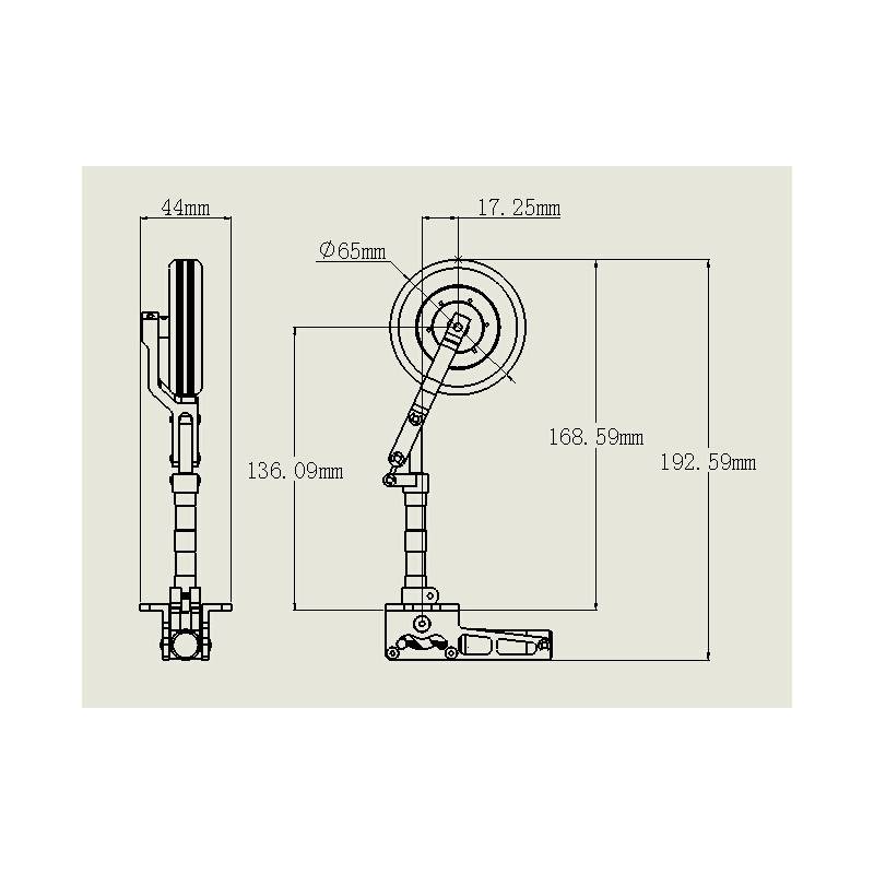 CNC Machined Aluminum articulated and mechanical suspended landing gear. Main gear and single nose gear. For planes up to 6kg