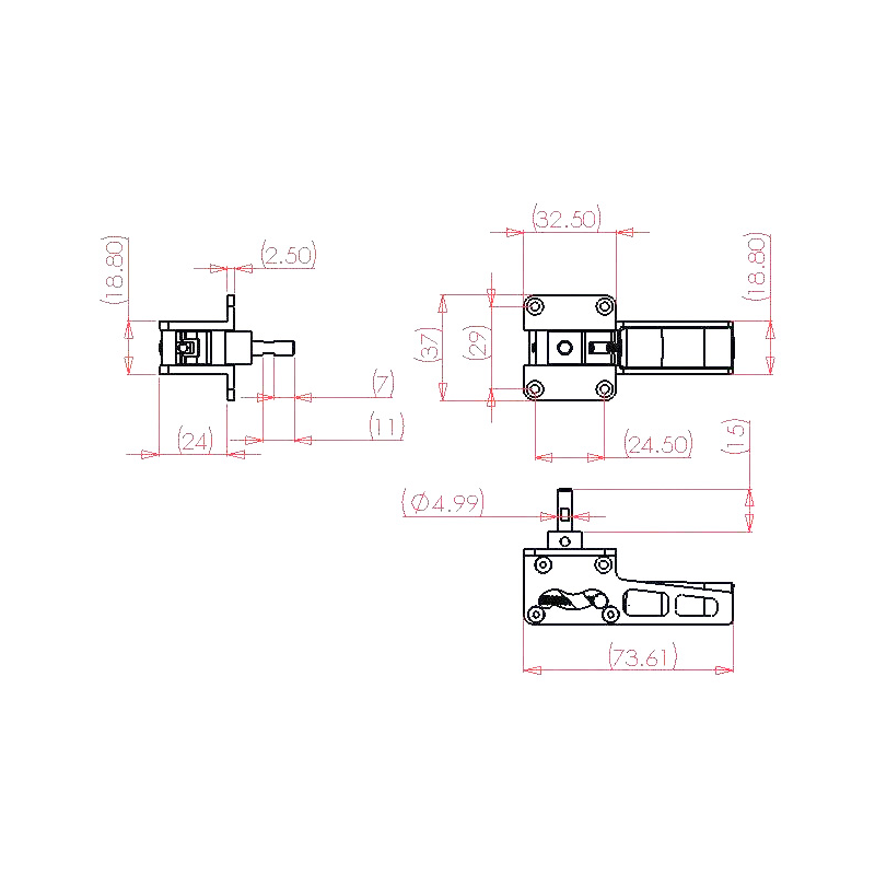 Retract mounting plate sizes: 33mm x 37mm